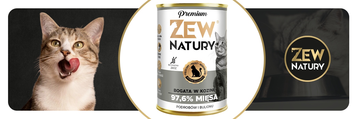 Regularne spożywanie karmy Zew Natury wpływa na poprawę odporności i zdrowie układu pokarmowego. Dodatkowo, wspiera zdrowie oczu, kości i zębów, co jest kluczowe dla witalności kociego seniora.