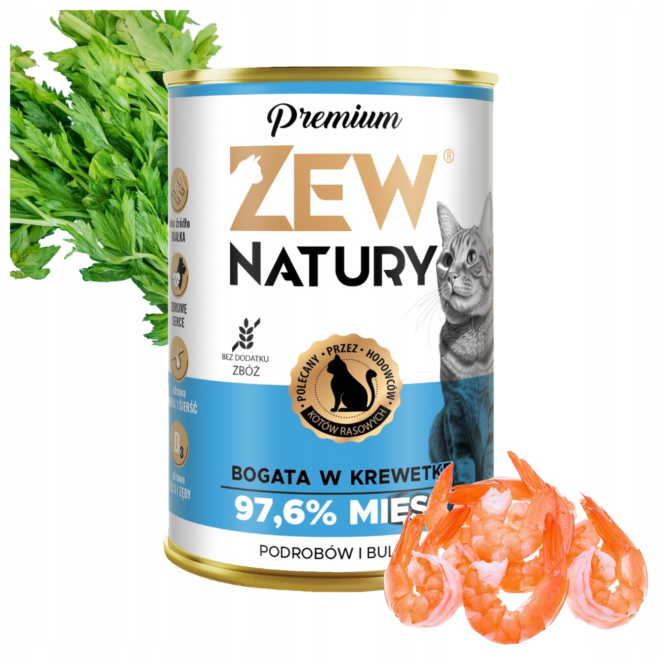 Skład | 69,6% indyk (44% mięso, 14,6% bulion, 7% wątroba, 4% żołądki), 28% krewetka (14% cała krewetka, 14% bulion), 1% minerały, 0,5% seler naciowy, 0,5% aronia, 0,2% olej z łososia, 0,1% rumianek, 0,1% tymianek |