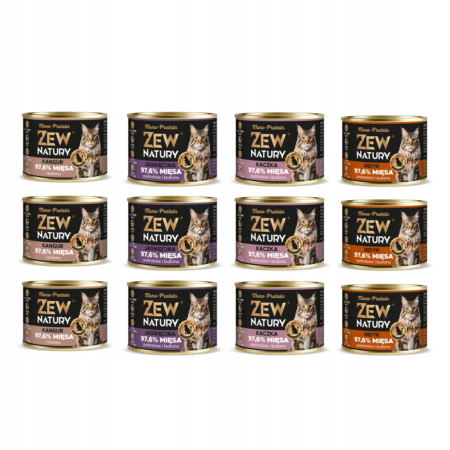 Odkryj unikalny zestaw 12 puszek mokrej karmy Zew Natury Mono-Protein stworzony z myślą o kotach z wrażliwością pokarmową i wymagających precyzyjnej diety. Ten pakiet to idealne rozwiązanie, oferujące bezpieczeństwo i jednocześnie urozmaicenie dzięki różnym, pojedynczym źródłom białka.