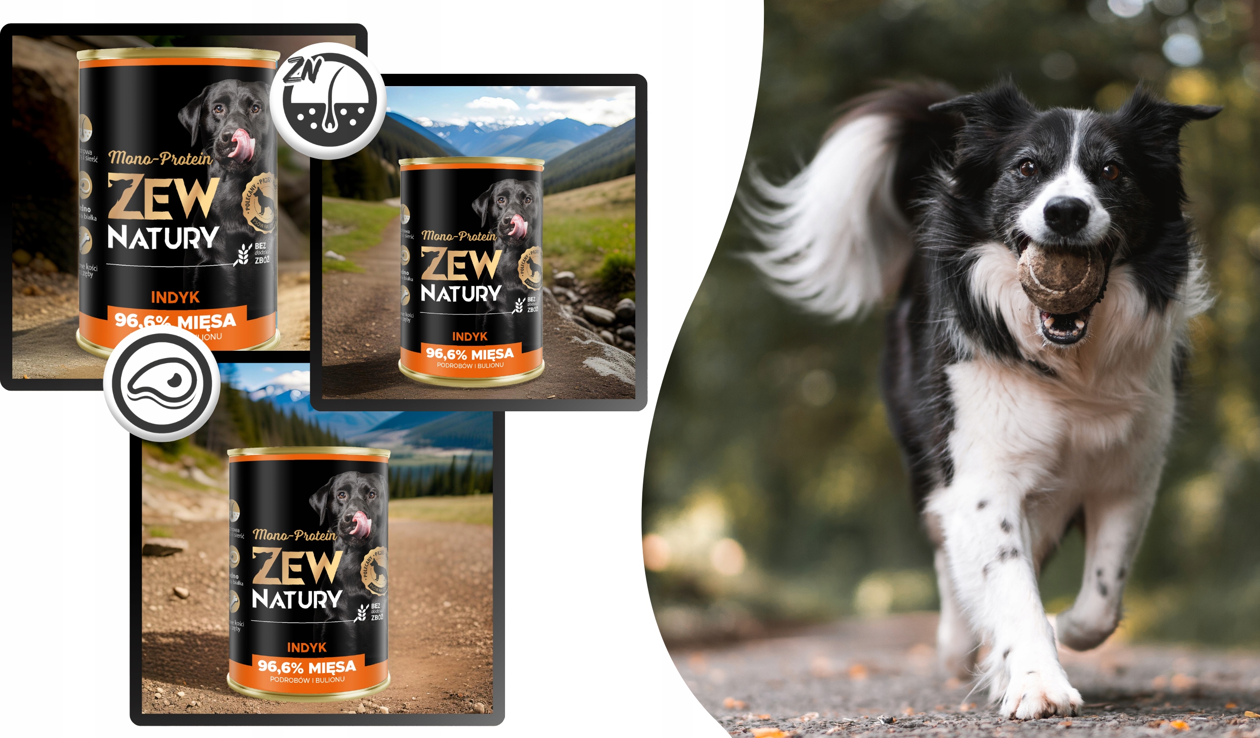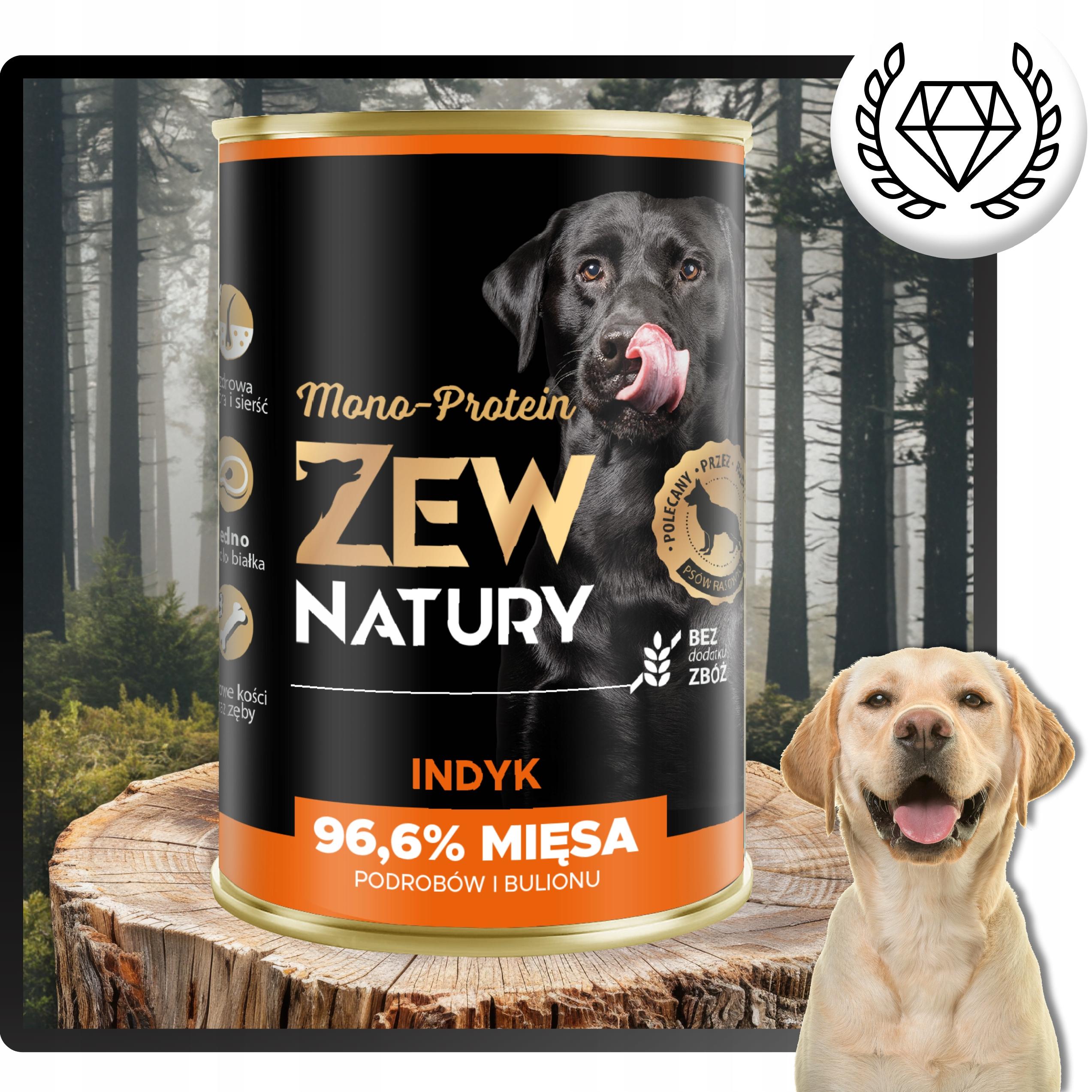 Zew Natury MONO-PROTEIN Indyk 400 g to pełnoporcjowa mokra karma dla psa, przygotowana z jednego źródła białka – indyka. Dzięki monoproteinowej recepturze sprawdzi się u wszystkich psów, a szczególnie dobrze u pupili wrażliwych i wymagających lekkostrawnej diety.