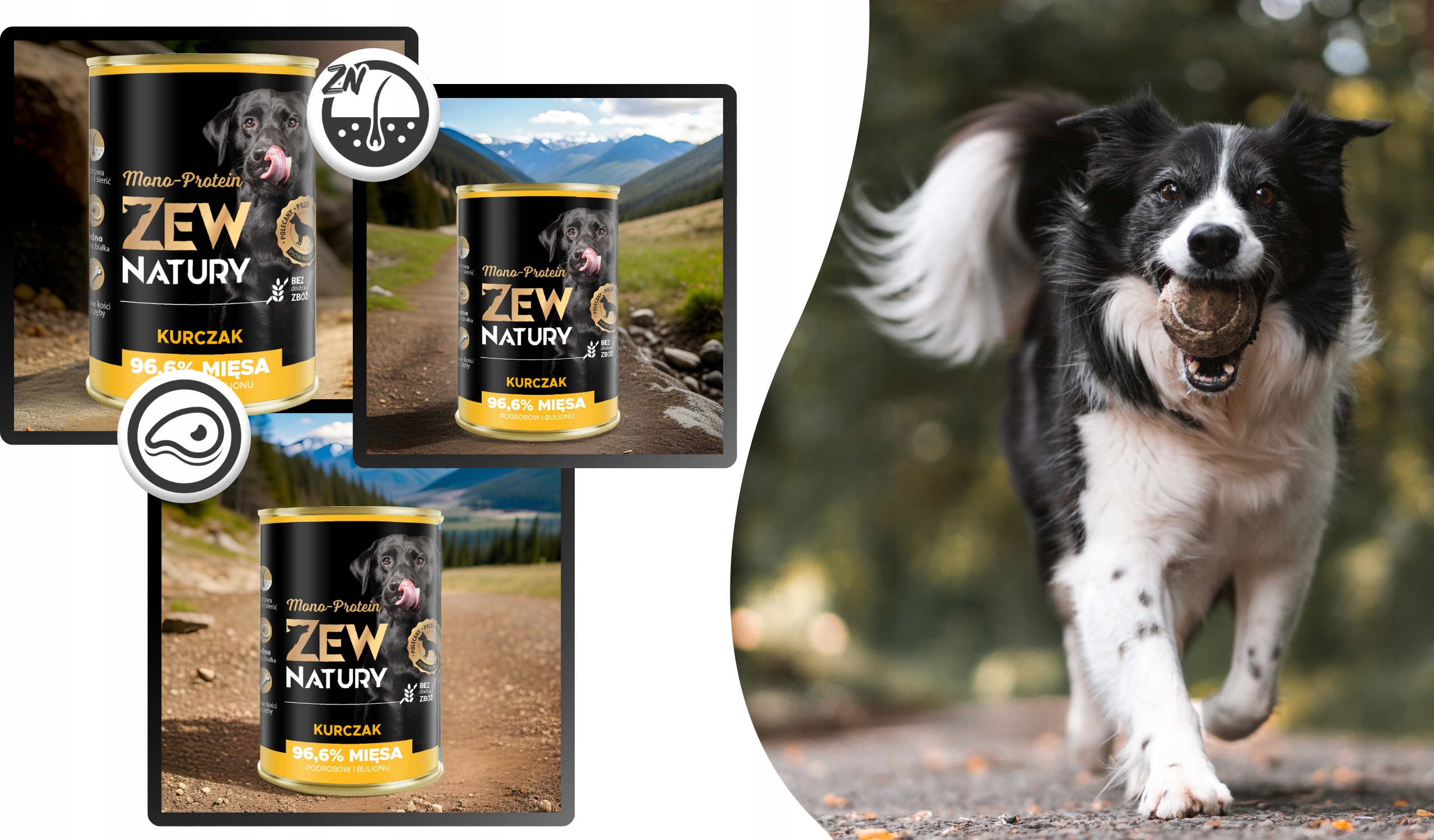 Regularne spożywanie karmy Zew Natury MONO-PROTEIN wpływa na poprawę odporności, zdrowie układu pokarmowego, a także wspiera zdrowie oczu, kości i zębów.