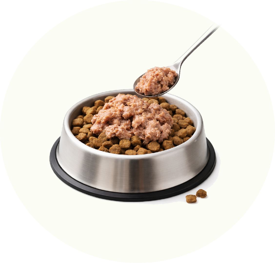 Wymieszaj porcję z suchą karmą lub nałóż niewielką ilość na jej wierzch.