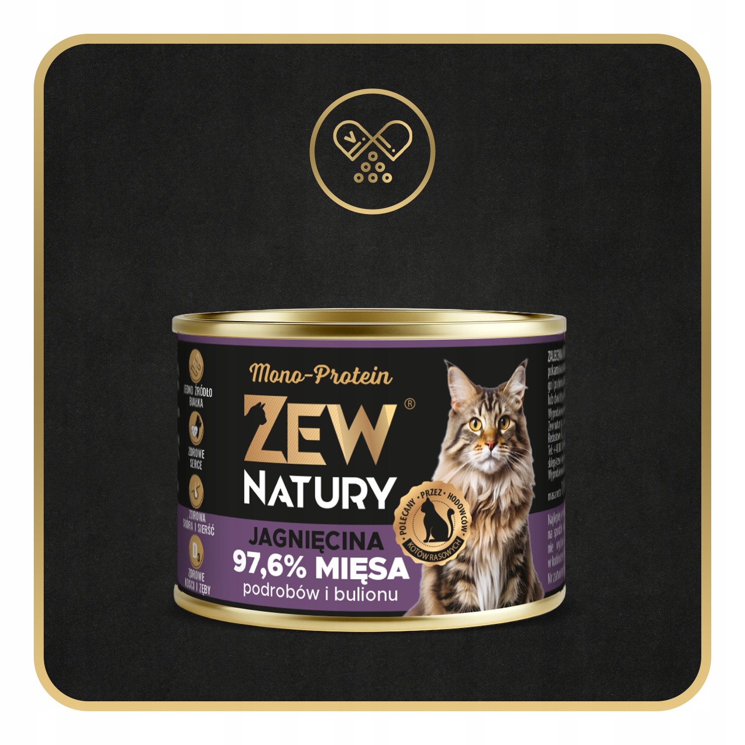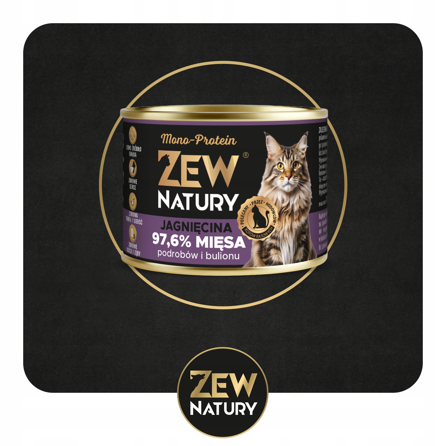 Mokra karma dla kota Zew Natury Mono-Protein Jagnięcina to pełnowartościowy posiłek, który dostarcza Twojemu pupilowi niezbędnych składników odżywczych. Zawiera wysokiej jakości mięso jako źródło białka.